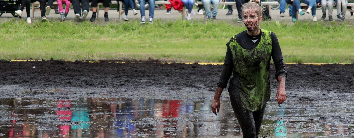 Testa din fysik och laganda på roligast möjliga sätt. Välj mellan fotboll, volleyboll, löpning och längdhopp – allt i en rejält blöt norrländsk myr.